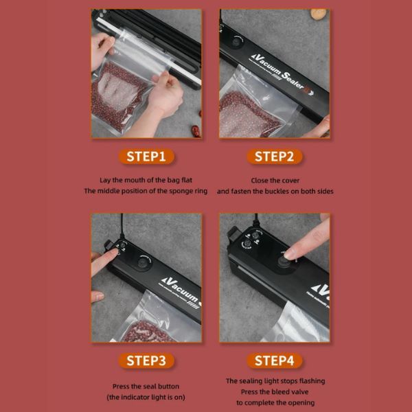 Vos paspaudę mygtuką, galite vakuuminiu būdu užklijuoti maistą, kad jis išliktų šviežias šaldytuve iki 10 kartų ilgiau nei laikomas plastikiniame inde.
