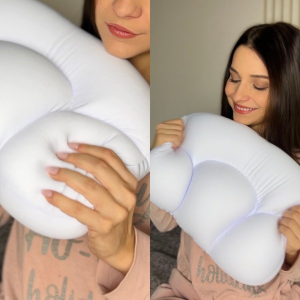 Ant nugaros, ant šono, ant pilvo – nesvarbu. 3D debesies kontūras prisitaiko prie tikslios jūsų formos, todėl nėra netinkamos padėties ir nereikia pabusti dėl to, kad atrama pasislinko.