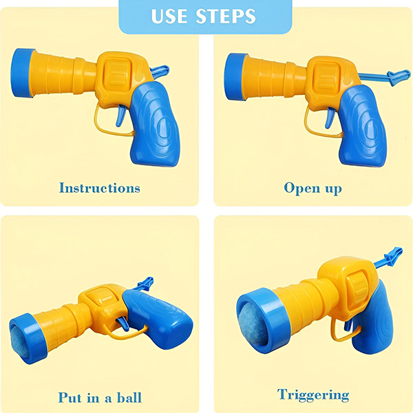 Kamuoliukų paleidimo įrenginį paprasta naudoti – tiesiog patraukite svirtį, įdėkite kamuoliuką ir paspauskite mygtuką, kad paleistumėte. Tinkamas žaisti patalpose, jis suteikia begalę pramogų jūsų katei, net kai jūsų nėra šalia.