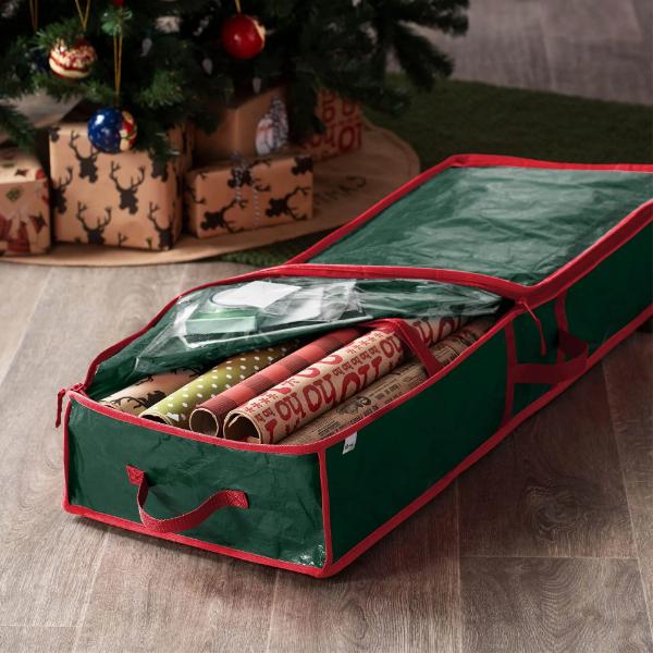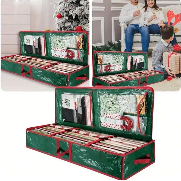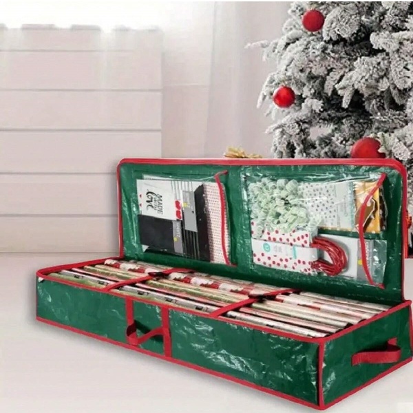 Šiame maiše, kuriame yra pakankamai vietos, saugomas visas šventinis vyniojamasis dovanų popierius, kad įtemptu šventiniu laikotarpiu viskas būtų vienoje vietoje ir lengvai pasiekiama.