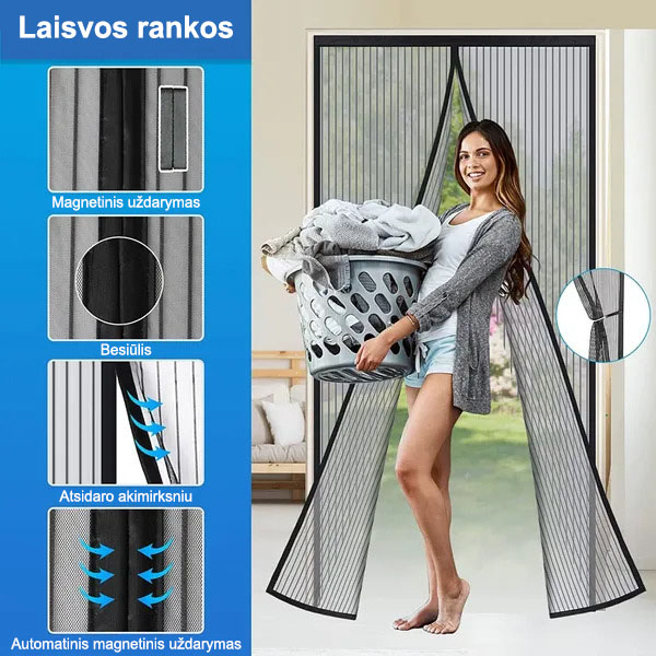 Pamirškite kovą su užtrauktukais ar lipdukais! Įmontuota magnetinė sistema užtikrina, kad tinklas užsidaro iškart po praeinant, puikiai tinka augintiniams, vaikams ir užimtiems žmonėms.