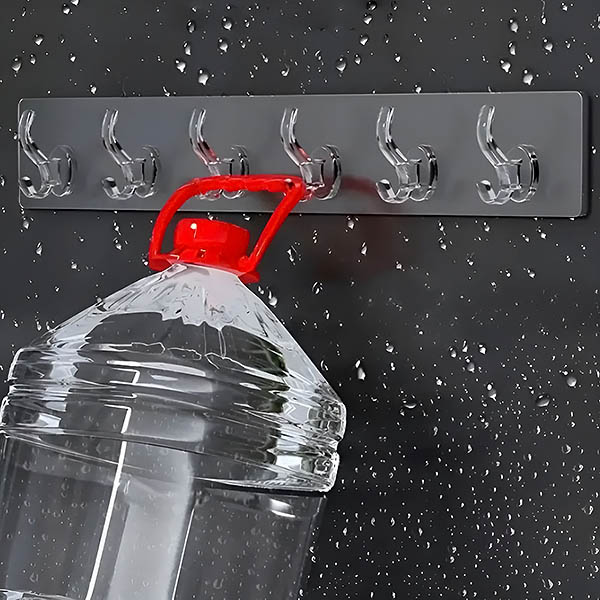 Pakeiskite savo namų organizavimą naudodami šią lanksčią lipnią pakabą. Joje yra šeši tvirti kabliukai, todėl ji puikiai tinka virtuvės įrankiams, vonios kambario reikmenims, drabužiams ir kt. laikyti.