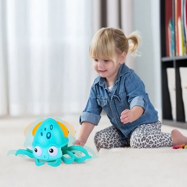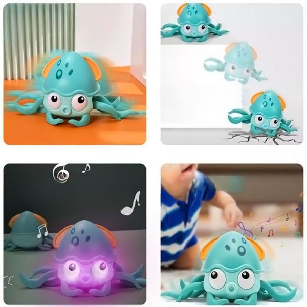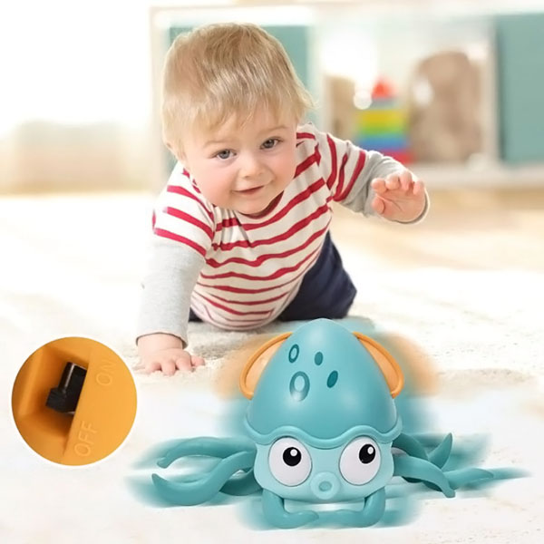 Šis žaismingas aštuonkojis šliaužioja, įkvėpdamas kūdikius sekti paskui jį ir lavinti motorinius įgūdžius.