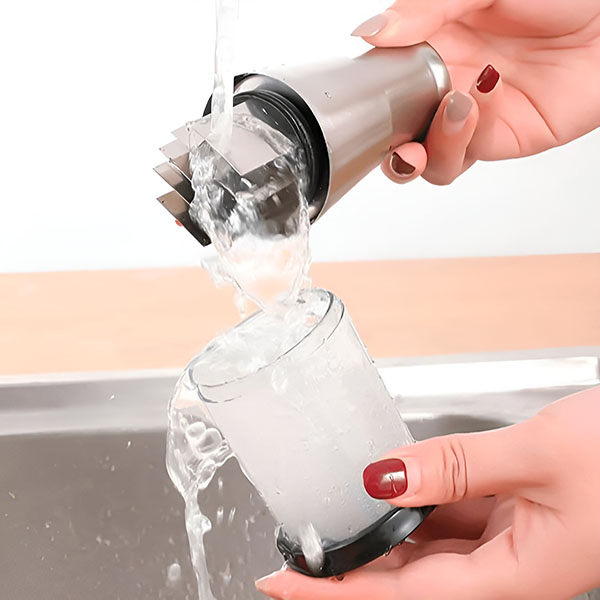 Pamirškite šveitimą! Tiesiog išardykite dalis ir nuplaukite jas po vandeniu – valymas bus atliktas per kelias sekundes. Puikiai tinka užimtoms virtuvėms, stovyklautojams ir visiems, kurie mėgsta patogumą.