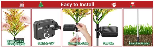 Naujas dizainas 2025 – Atsižvelgdami į klientų atsiliepimus, optimizavome ir patobulinome daugelį funkcijų. Saulės energija maitinamas šviesos medis pagamintas iš aukštos kokybės ABS medžiagos, o jo išvaizda primena pušį ir kiparisą. Jis automatiškai įsijungia ir šviečia dviem skirtingais režimais, kad atitiktų visus jūsų poreikius.
