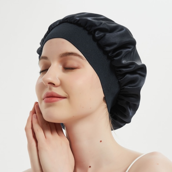 Mūsų kepurė plačiais kraštais pagaminta iš aukščiausios kokybės šilkinio atlaso audinio, todėl ji užtikrina maksimalų komfortą neaukojant stiliaus. Plati juosta sukurta taip, kad galėtų išsitempti ir individualiai prisitaikyti, todėl užtikrina prabangią ir saugią plaukų apsaugą.