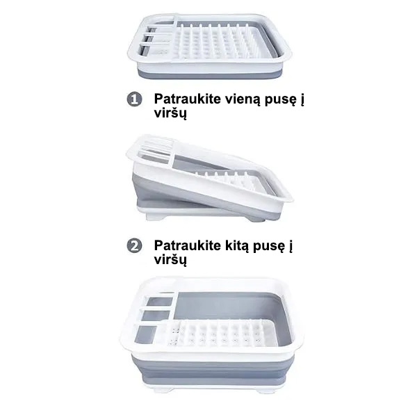 Nenaudojamą indą galima sulankstyti ir laikyti padėtą, kad virtuvėje užtektų vietos.