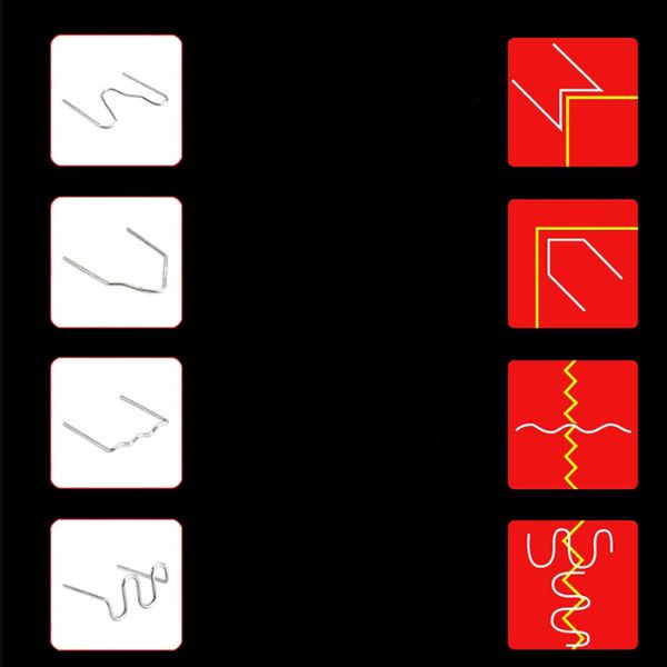 Komplekte: 1x suvirinimo prietaisas, 1x replės, 1x peilis, 200 skirtingų segtukų
