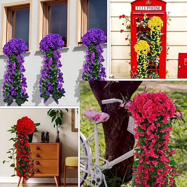 Suteikite elegancijos bet kuriai erdvei su mūsų tikroviškomis dirbtinėmis kabančiomis gėlėmis. Pagamintos iš išskirtinio šilką primenančio audinio ir aukštos kokybės plastiko, šios pakabinamos gėlės suteiks jūsų aplinkai natūralaus žavesio.